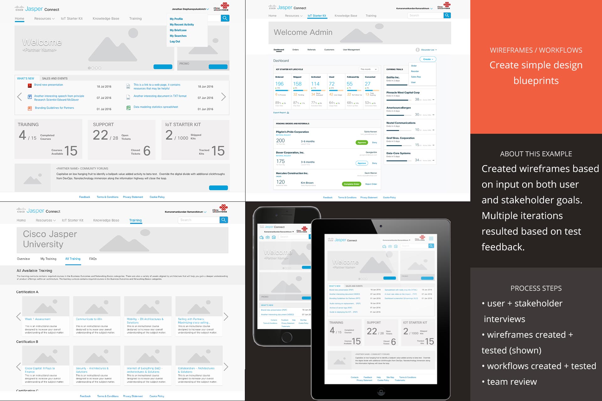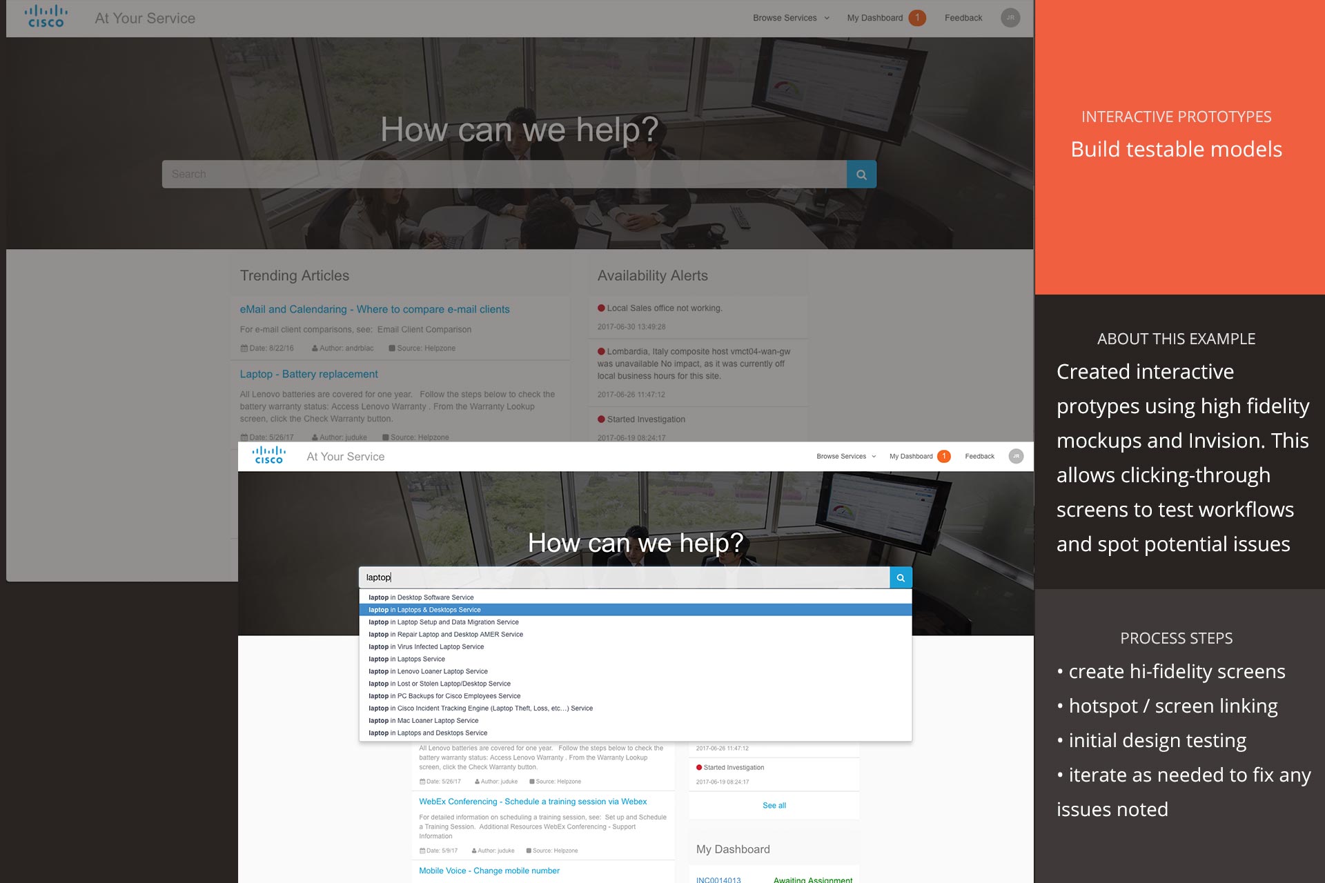 My work deliverables vary depending on the nature of the project, but tend to include personas, journey maps, wireframes and high-fidelity designs, interactive prototypes, survey
